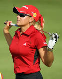 Caitlin came down for the weekend and we had a great time at the course and shopping. On Saturday Cait wanted to buy me a Father's Day present so we went to the main merchandise tent. While there I suggested that we try to have our picture taken next door at the Lexus exhibit. When we walked over, a young women asked if we would like to have Natalie Gulbis sign a picture for us. For those that don't know, I am a huge Natalie Gulbis fan. So we got in line. I was so nervous I was almost speechless (again, those that know me would have trouble believing this). She was as friendly and pleasant as I had expected.